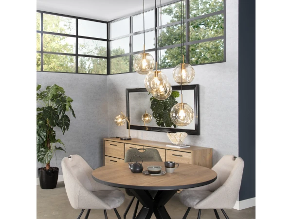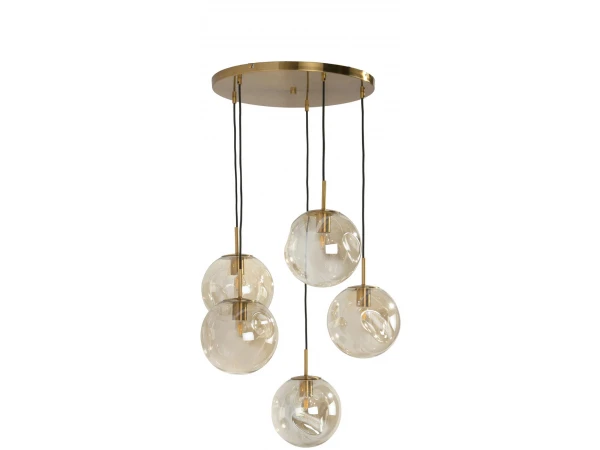 Deze gouden hanglamp van BO is perfect voor wie op zoek is naar een elegante eyecatcher in zijn interieur. De brass metalen lamp bestaat uit vijf bollen met ingedeukt glas, en heeft een luxueuze uitstraling. Bo is dimbaar en verstelbaar, waardoor je zelf de gewenste sfeer bepaalt.
