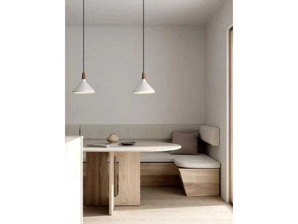 Nori is een familie plafondlampen die bij elkaar staan zonder onafscheidelijk te zijn. Lijnen, vormen en oppervlakken zijn harmonisch en geven alle ontwerpen met een onmiskenbaar gemak. Het ontwerp is rechtopstaand en verfijnd in zijn exclusieve FSC-gecertificeerde geoliede walnootblad, één van de kenmerken van de Nori-collectie. Deze Scandinavische hanglampen passen gemakkelijk in een reeks interieurcontexten – met slimme looks in een mix van kleuren en maten.