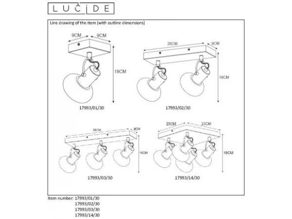 - 4 x E14 fitting, 25W (niet inbegrepen)