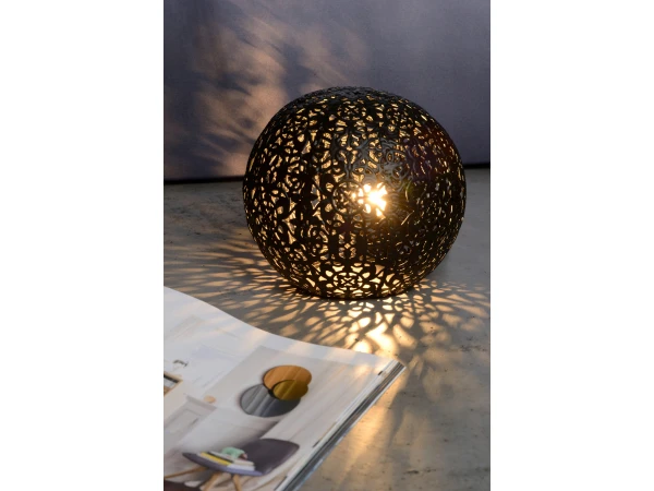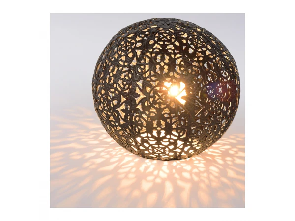 Deze elegante tafellamp blinkt uit dankzij een fijne structuur gemaakt van metaal. De ronde bol is omgeven door een maas van sierlijke krullen en motieven. Die zorgen voor een zeer luxueuze aanblik. De tafellamp is perfect als extra sfeerverlichting in je woonkamer, in een nis van de wandkast of als decoratie-element in je slaapkamer. Paolo, zo heet de tafellamp, bedien je makkelijk dankzij de schakelaar op het snoer. In een klassiek of landelijk interieur staat deze tafellamp erg mooi, maar ook in moderne woningen voelt de tafellamp zich perfect thuis.