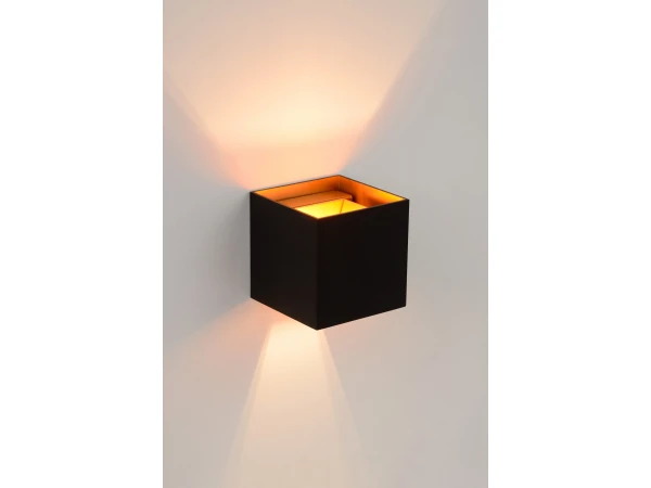 Deze moderne vierkante wandlampen van Lucide brengen sfeer in huis door licht te schijnen boven- en onderaan de spot. Met een dimmer kun je de wandlampen zo instellen dat ze een breed of smal licht geven, om zo meer of minder licht te creëren. Indien gewenst kun je ze ook enkel langs één kant laten schijnen. Door het aluminium frame zijn ze gemakkelijk te installeren en verplaatsen. Deze wandlampen zijn beschikbaar in wit, grijs en zwart met koperen binnenzijde.