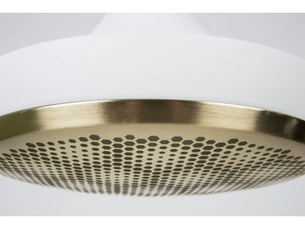 Met een design geïnspireerd op een industrieel zoutvaatje springt deze hanglamp van Zuiver meteen in het oog. Zo zorgt de unieke onderkant voor een apart patroon.Messing gekleurd honiggraat patroonZwarte kabel, 145 cmGeschikt voor lichtbronnen met E27 fittingMax. 4 watt LED
